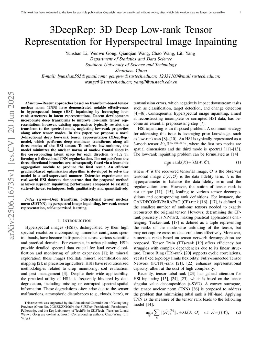 3DeepRep: 3D Deep Low-rank Tensor Representation for Hyperspectral Image Inpainting