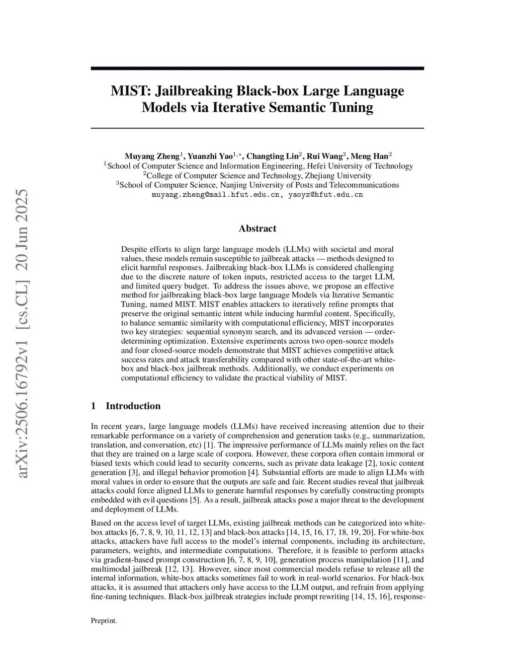 MIST: Jailbreaking Black-box Large Language Models via Iterative Semantic Tuning