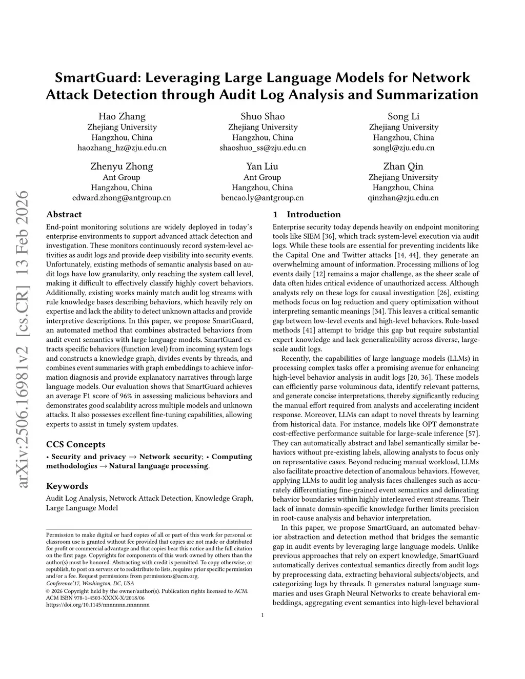 SmartGuard: Leveraging Large Language Models for Network Attack Detection through Audit Log Analysis and Summarization