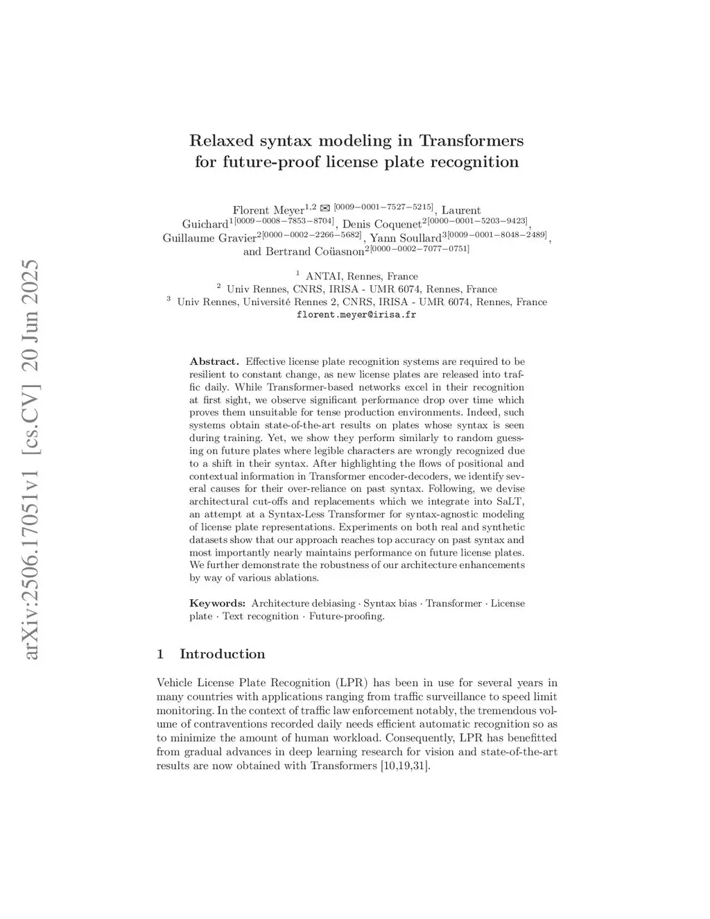 Relaxed syntax modeling in Transformers for future-proof license plate recognition