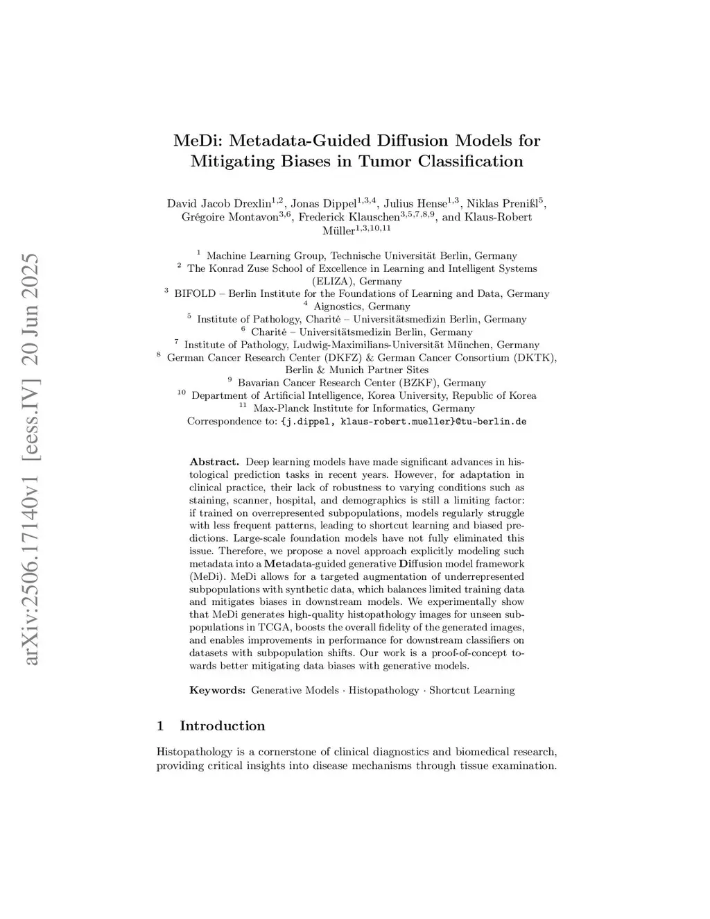 MeDi: Metadata-Guided Diffusion Models for Mitigating Biases in Tumor Classification