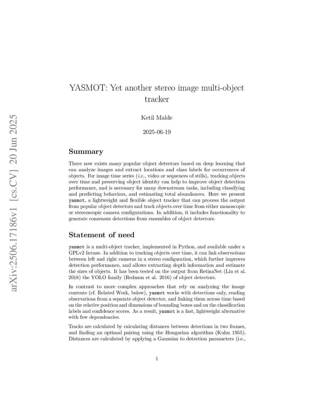 YASMOT: Yet another stereo image multi-object tracker