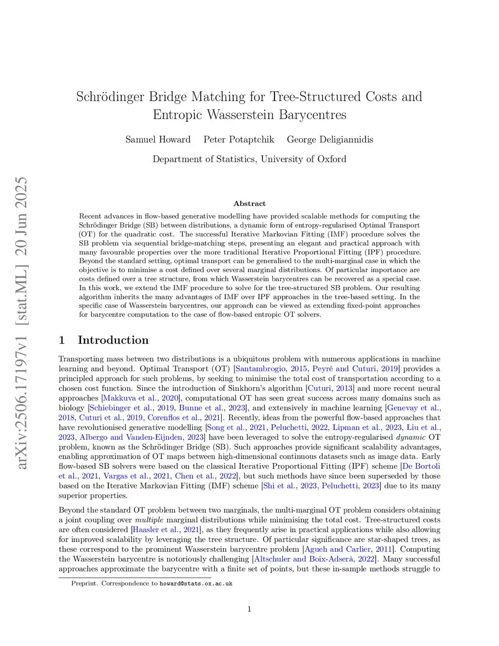 Recent advances in flow-based generative modelling have provided scalable methods for computing the Schrödinger Bridge (SB) between distributions, a dynamic form of entropy-regularised Optimal Transport (OT) for the quadratic cost. The successful Iterative Markovian Fitting (IMF) procedure solves the SB problem via sequential bridge-matching steps, presenting an elegant and practical approach with many favourable properties over the more traditional Iterative Proportional Fitting (IPF) procedure. Beyond the standard setting, optimal transport can be generalised to the multi-marginal case in which the objective is to minimise a cost defined over several marginal distributions. Of particular importance are costs defined over a tree structure, from which Wasserstein barycentres can be recovered as a special case. In this work, we extend the IMF procedure to solve for the tree-structured SB problem. Our resulting algorithm inherits the many advantages of IMF over IPF approaches in the tree-based setting. In the case of Wasserstein barycentres, our approach can be viewed as extending the widely used fixed-point approach to use flow-based entropic OT solvers, while requiring only simple bridge-matching steps at each iteration.