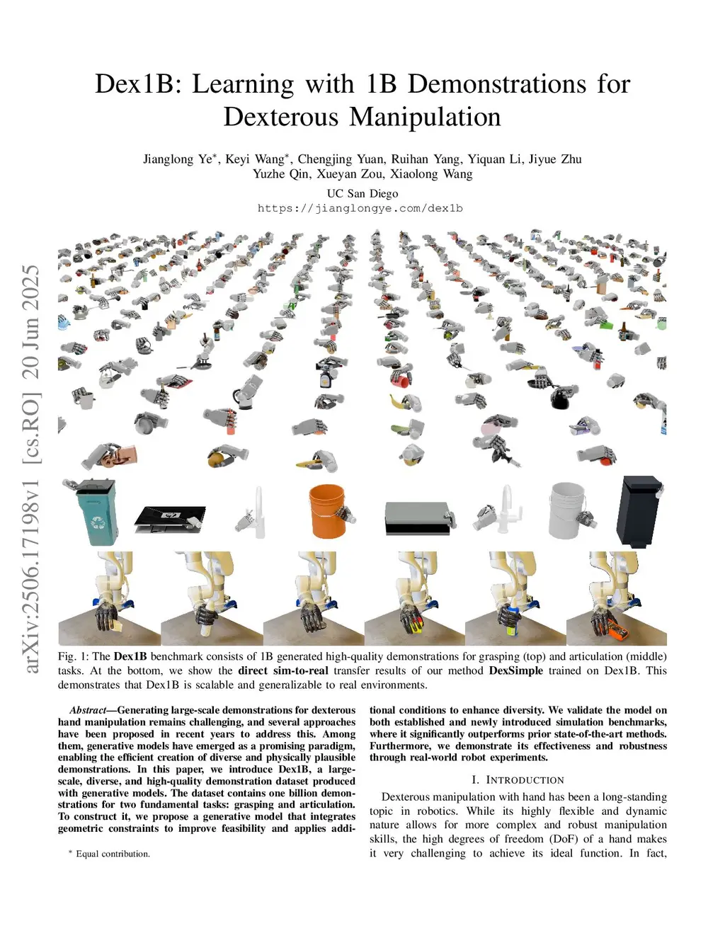 Dex1B: Learning with 1B Demonstrations for Dexterous Manipulation