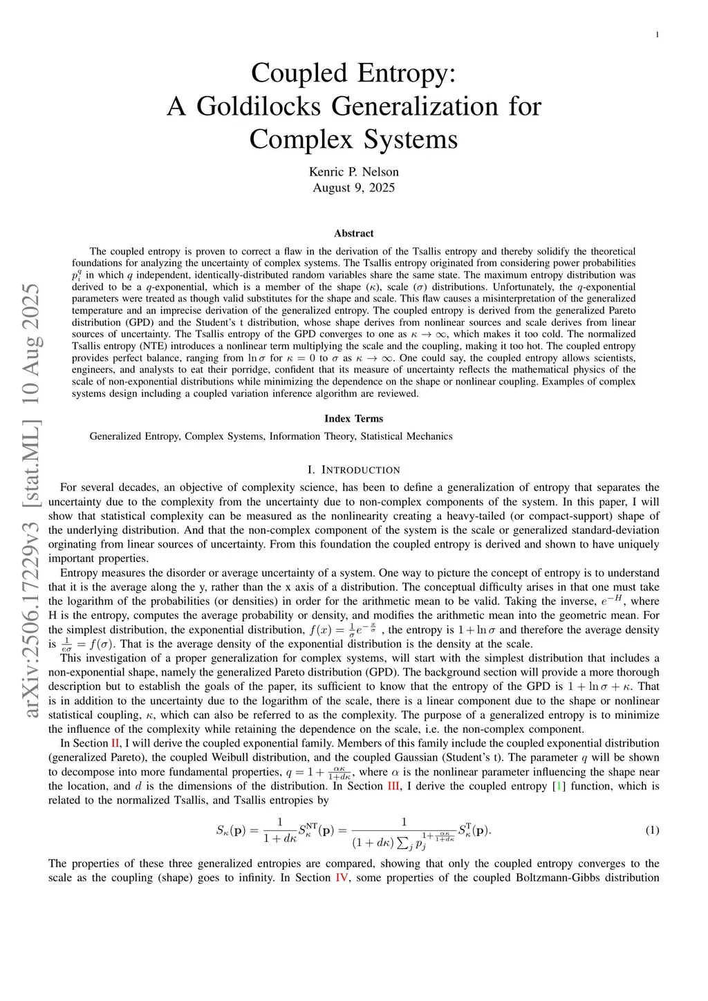 Nonextensive Statistical Mechanics (NSM) has developed into a powerful toolset for modeling and analyzing complex systems. Despite its many successes, a puzzle arose early in its development. The constraints on the Tsallis entropy are in the form of an escort distribution with elements proportional to , but this same factor within the Tsallis entropy function is not normalized. This led to consideration of the Normalized Tsallis Entropy (NTE); however, the normalization proved to make the function unstable. I will provide evidence that the coupled entropy, which divides NTE by , where is the dimension and is the coupling, may provide the necessary robustness necessary for applications like machine learning. The definition for the coupled entropy and its maximizing distributions, the coupled exponential family, arises from clarifying how the number of independent random variables is composed of the nonlinear properties of complex systems, , where is the nonlinear parameter governing the shape of distributions near their location and is the parameter determining the asymptotic tail decay. Foundationally, for complex systems, the coupling is the measure of nonlinearity inducing non-exponential distributions and the degree of nonadditivity entropy. As such, the coupling is a strong candidate as a measure of statistical complexity.
