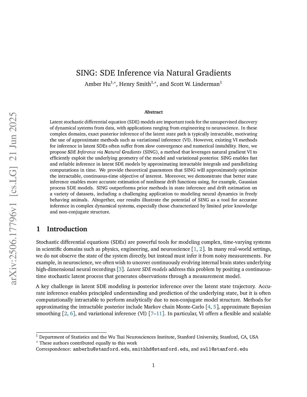 SING: SDE Inference via Natural Gradients