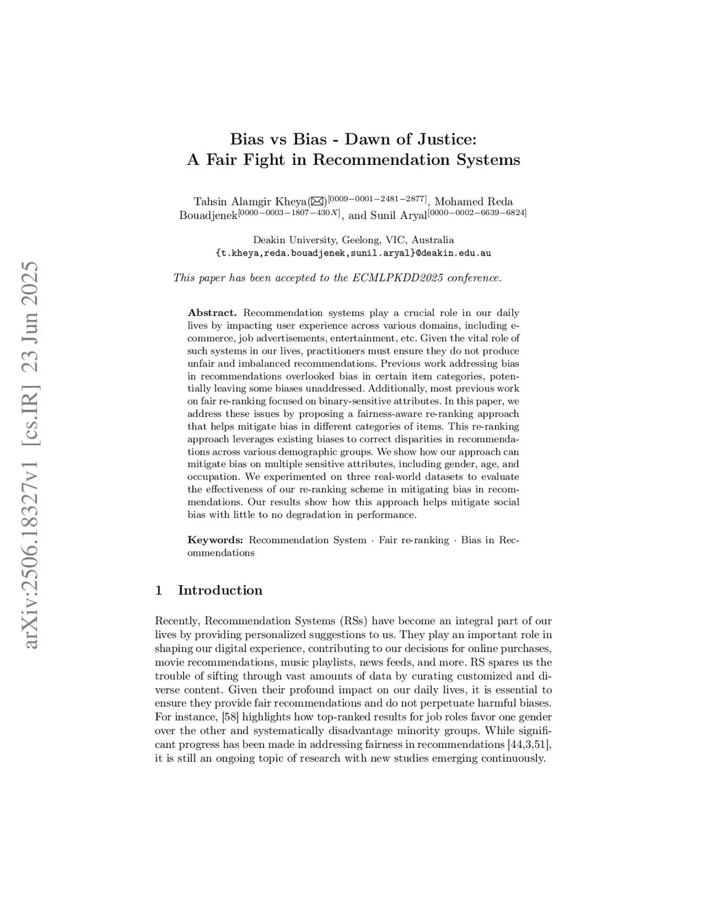 Bias vs Bias -- Dawn of Justice: A Fair Fight in Recommendation Systems