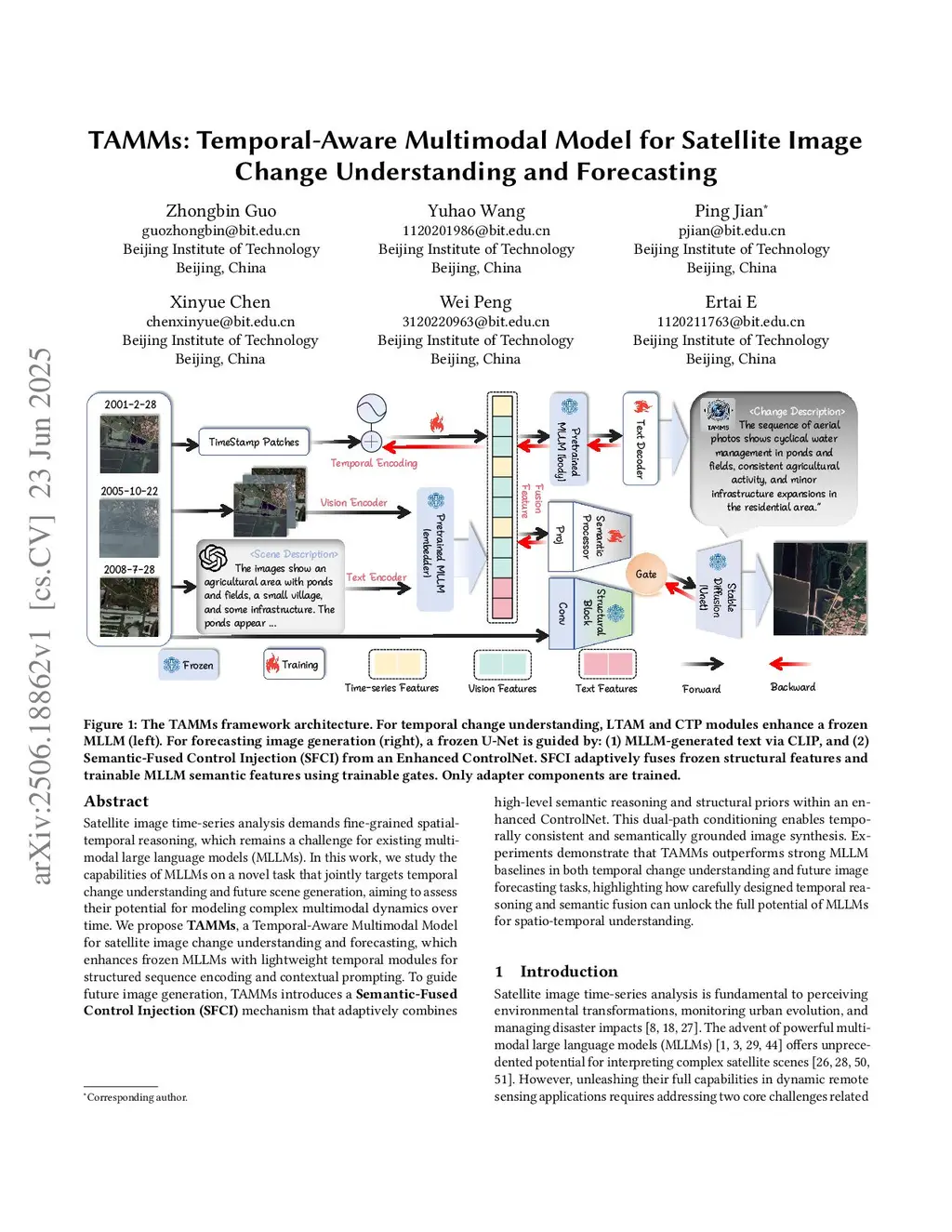 TAMMs: Temporal-Aware Multimodal Model for Satellite Image Change Understanding and Forecasting