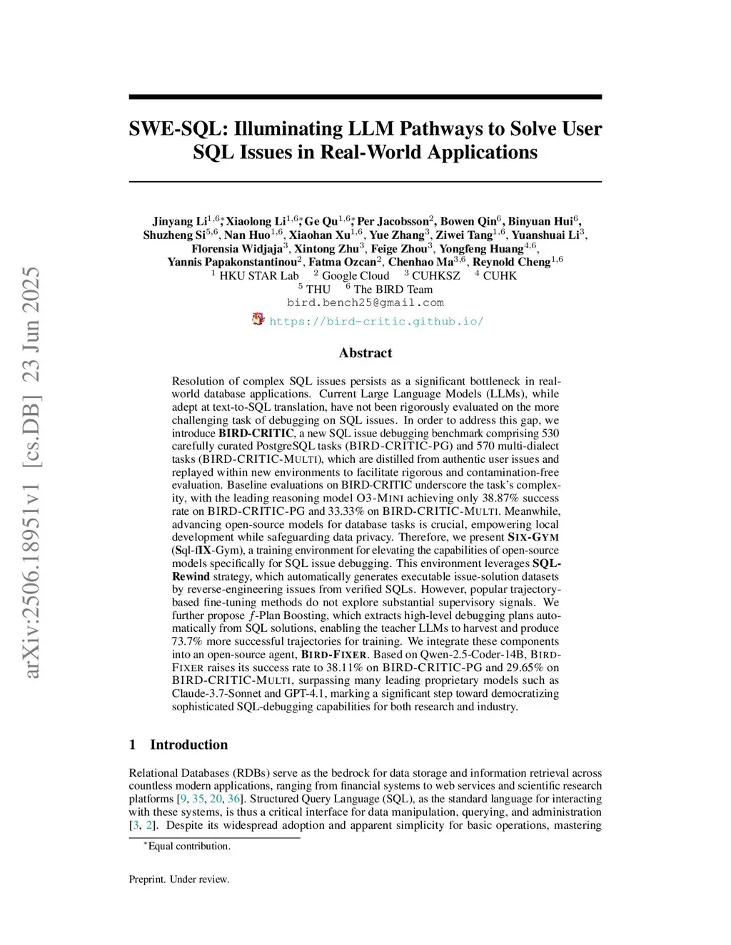 Resolution of complex SQL issues persists as a significant bottleneck in real-world database applications. Current Large Language Models (LLMs), while adept at text-to-SQL translation, have not been rigorously evaluated on the more challenging task of debugging SQL issues. To address this gap, we introduce BIRD-CRITIC, a new SQL issue debugging benchmark comprising 530 PostgreSQL tasks (BIRD-CRITIC-PG) and 570 multi-dialect tasks (BIRD-CRITIC-Multi), distilled from authentic user issues and replayed within new environments to facilitate rigorous evaluation. Baseline evaluations underscore the task's complexity, with the leading reasoning model O3-Mini achieving only 38.87% success rate on BIRD-CRITIC-PG and 33.33% on BIRD-CRITIC-Multi. Meanwhile, advancing open-source models for database tasks is crucial for empowering local development while safeguarding data privacy. Therefore, we present Six-Gym (Sql-fIX-Gym), a training environment for elevating open-source model capabilities for SQL issue debugging. This environment leverages SQL-Rewind strategy, which automatically generates executable issue-solution datasets by reverse-engineering issues from verified SQLs. However, popular trajectory-based fine-tuning methods do not explore substantial supervisory signals. We further propose f-Plan Boosting, which extracts high-level debugging plans from SQL solutions, enabling teacher LLMs to produce 73.7% more successful trajectories for training. We integrate these components into an open-source agent, Bird-Fixer. Based on Qwen-2.5-Coder-14B, Bird-Fixer achieves 38.11% success rate on BIRD-CRITIC-PG and 29.65% on BIRD-CRITIC-Multi, surpassing leading proprietary models such as Claude-3.7-Sonnet and GPT-4.1, marking a significant step toward democratizing sophisticated SQL-debugging capabilities. The leaderboard and source code are available:this https URL