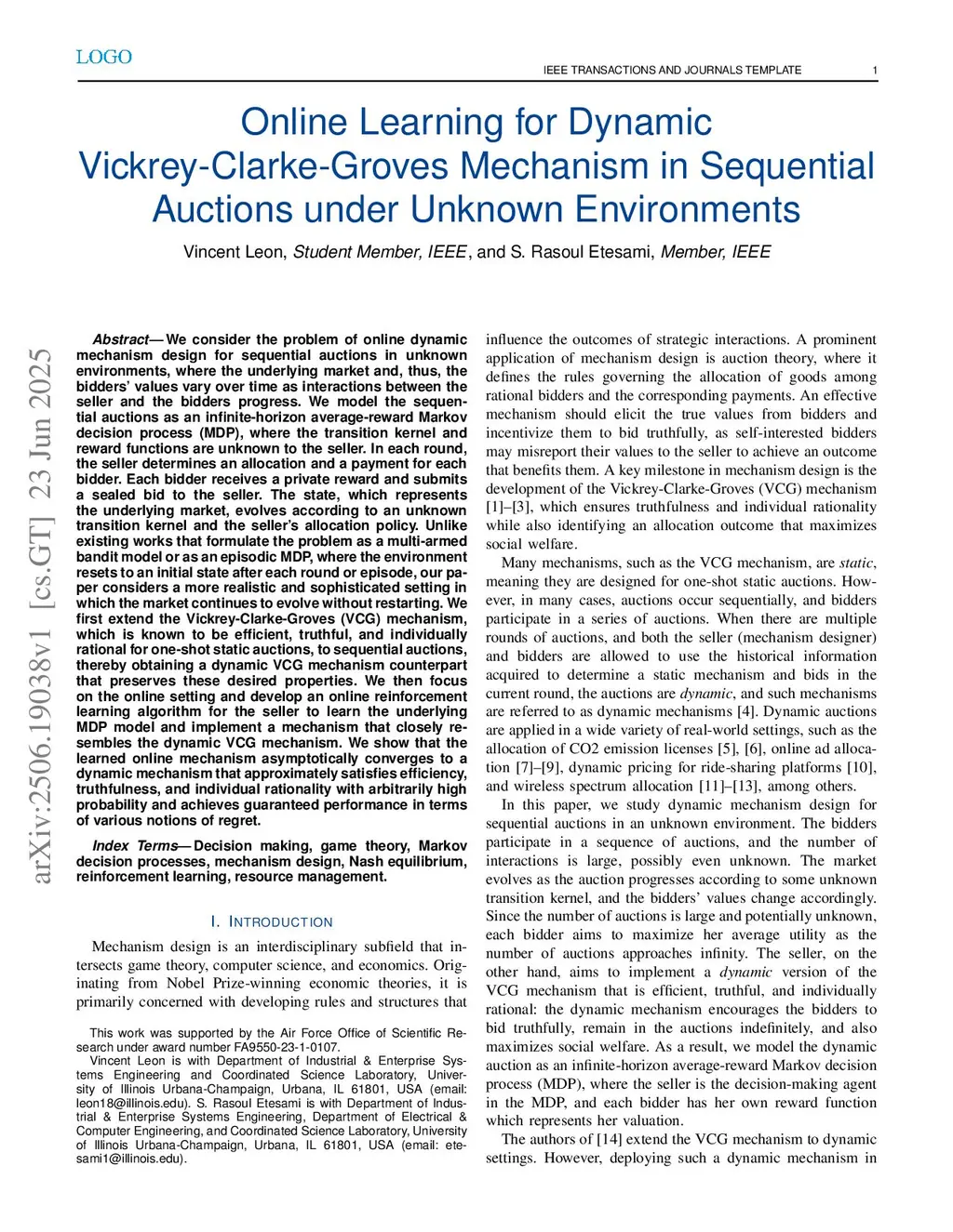 Online Learning for Dynamic Vickrey-Clarke-Groves Mechanism in Unknown Environments