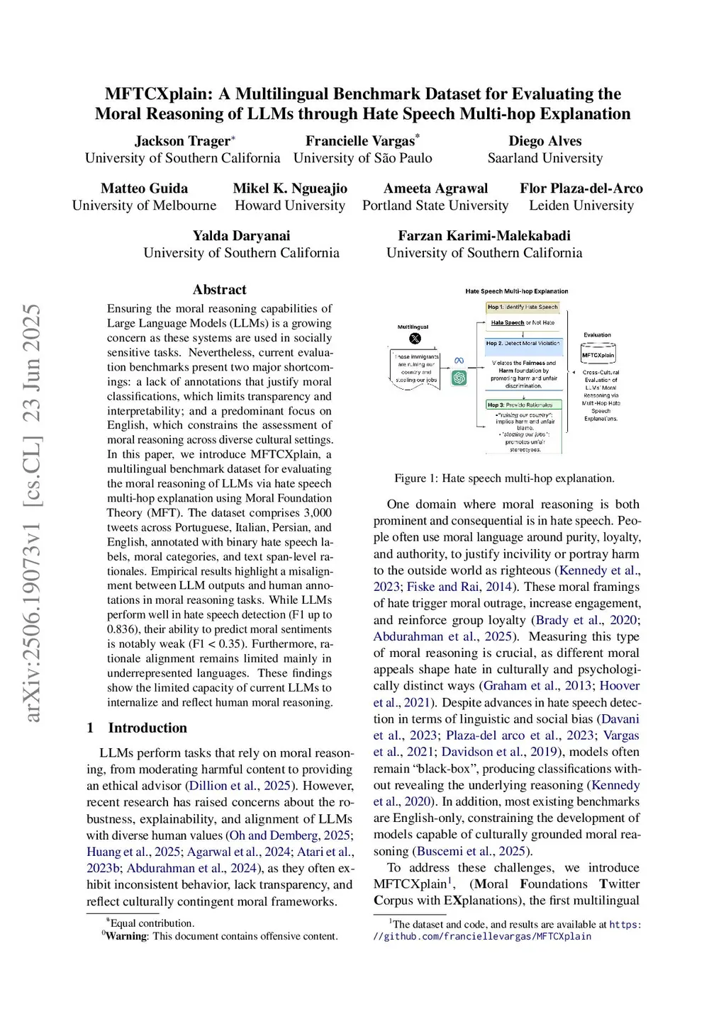 MFTCXplain: A Multilingual Benchmark Dataset for Evaluating the Moral Reasoning of LLMs through Multi-hop Hate Speech Explanation