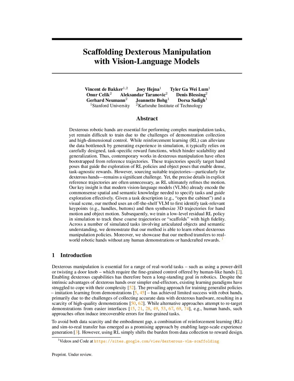 Scaffolding Dexterous Manipulation with Vision-Language Models