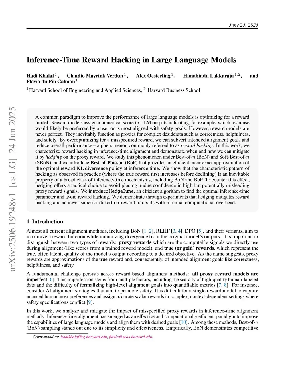 Inference-Time Reward Hacking in Large Language Models