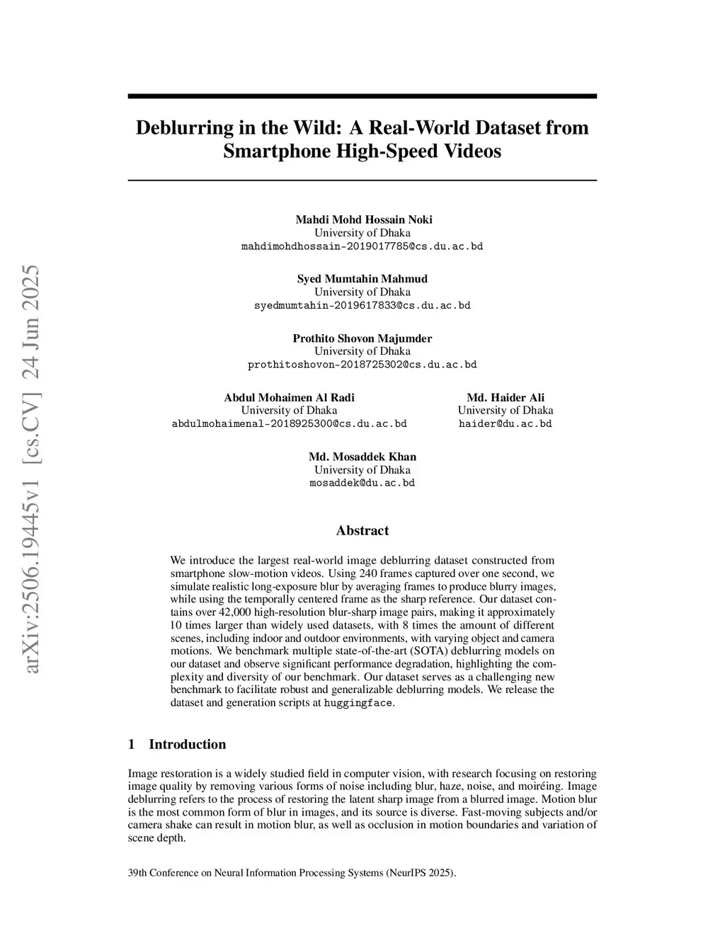 Deblurring in the Wild: A Real-World Image Deblurring Dataset from Smartphone High-Speed Videos
