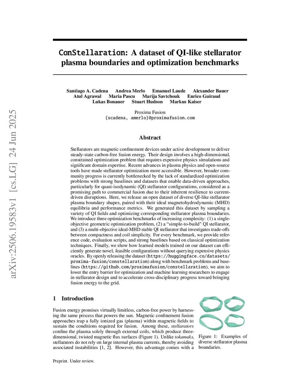 Stellarators are magnetic confinement devices under active development to deliver steady-state carbon-free fusion energy. Their design involves a high-dimensional, constrained optimization problem that requires expensive physics simulations and significant domain expertise. Recent advances in plasma physics and open-source tools have made stellarator optimization more accessible. However, broader community progress is currently bottlenecked by the lack of standardized optimization problems with strong baselines and datasets that enable data-driven approaches, particularly for quasi-isodynamic (QI) stellarator configurations, considered as a promising path to commercial fusion due to their inherent resilience to current driven disruptions. Here, we release an open dataset of diverse QI-like stellarator plasma boundary shapes, paired with their ideal magnetohydrodynamic (MHD) equilibria and performance metrics. We generated this dataset by sampling a variety of QI fields and optimizing corresponding stellarator plasma boundaries. We introduce three optimization benchmarks of increasing complexity: (1) a single objective geometric optimization problem, (2) a "simple-to-build" QI stellarator, and (3) a multi-objective ideal-MHD stable QI stellarator that investigates trade-offs between compactness and coil simplicity. For every benchmark, we provide reference code, evaluation scripts, and strong baselines based on classical optimization techniques. Finally, we show how learned models trained on our dataset can efficiently generate novel, feasible configurations without querying expensive physics oracles. By openly releasing the dataset along with benchmark problems and baselines, we aim to lower the entry barrier for optimization and machine learning researchers to engage in stellarator design and to accelerate cross-disciplinary progress toward bringing fusion energy to the grid.
