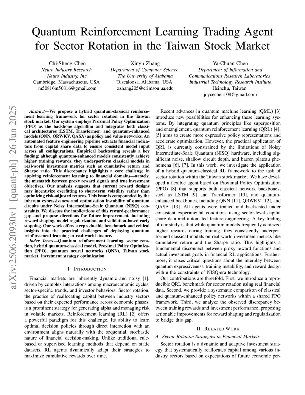 Quantum Reinforcement Learning Trading Agent for Sector Rotation in the Taiwan Stock Market