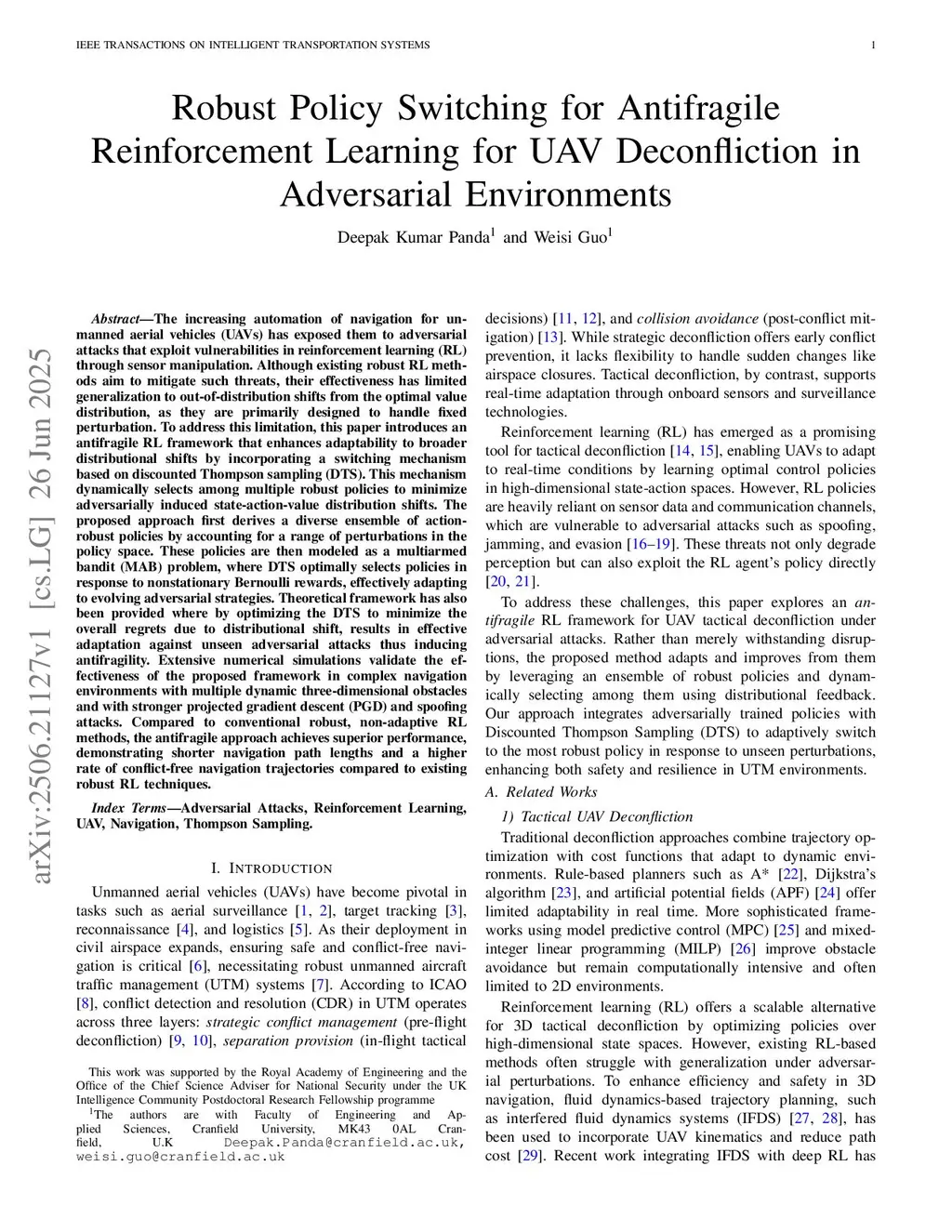 Robust Policy Switching for Antifragile Reinforcement Learning for UAV Deconfliction in Adversarial Environments