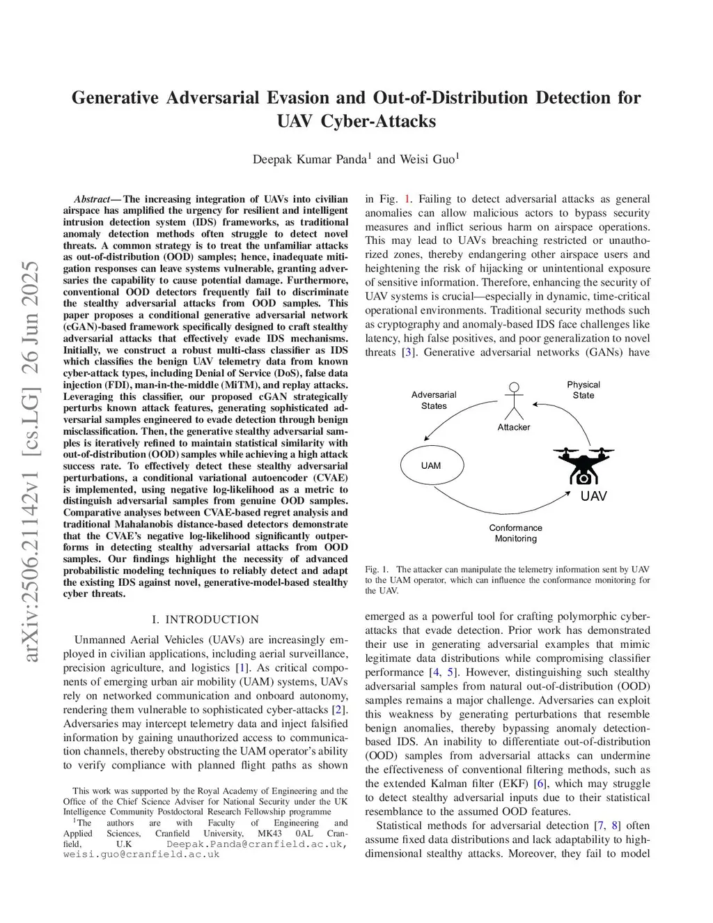 Generative Adversarial Evasion and Out-of-Distribution Detection for UAV Cyber-Attacks