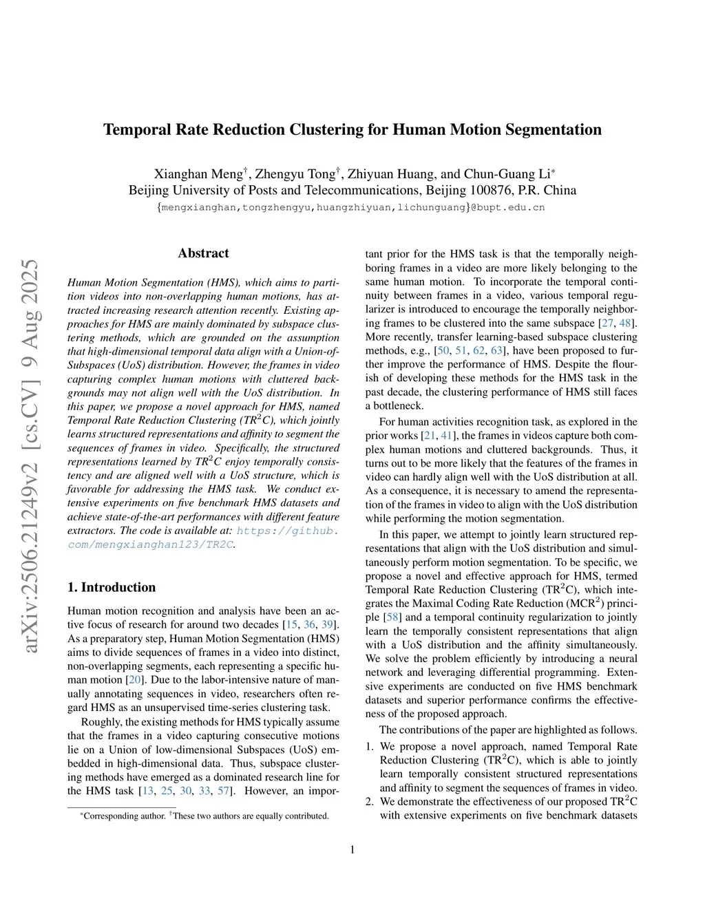 Temporal Rate Reduction Clustering for Human Motion Segmentation
