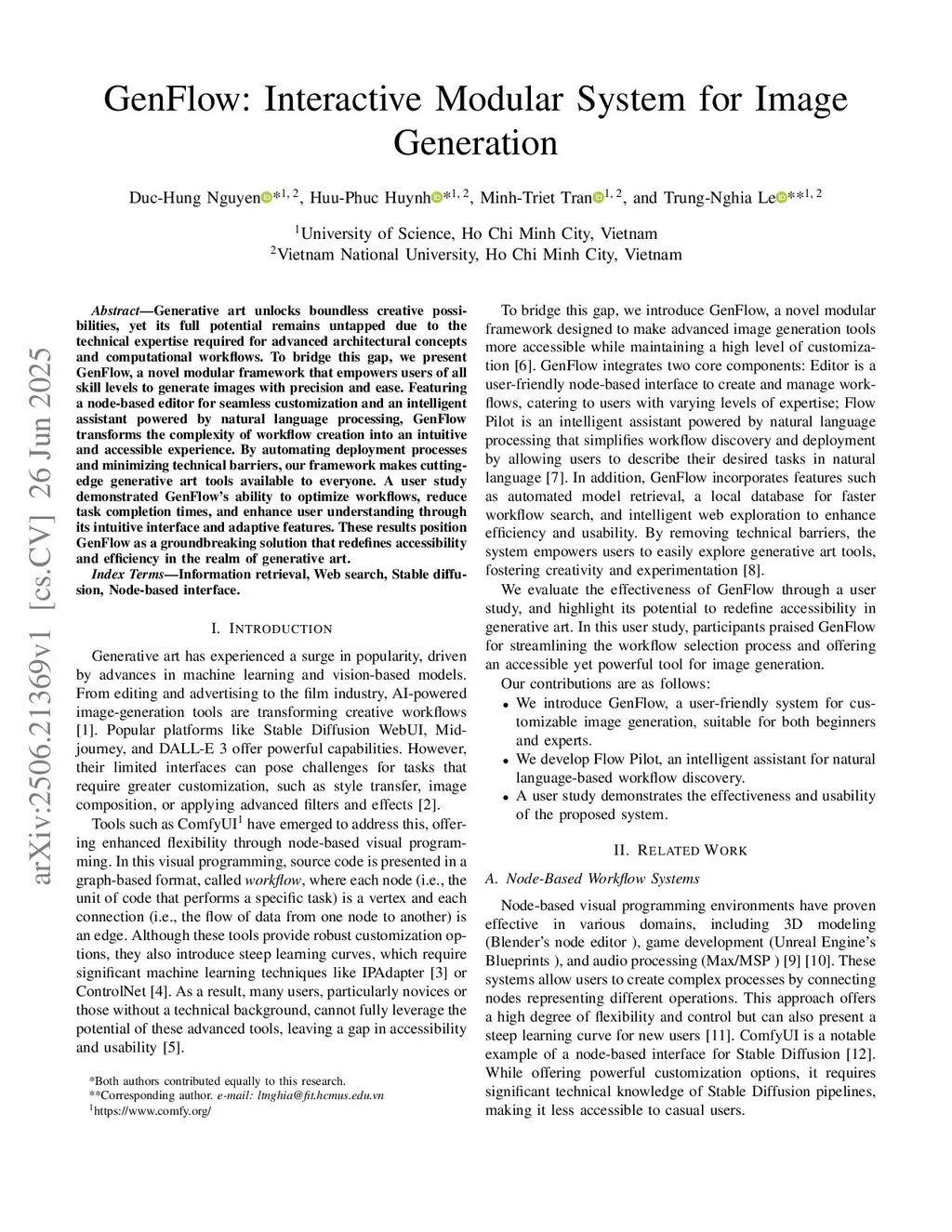 Generative art unlocks boundless creative possibilities, yet its full potential remains untapped due to the technical expertise required for advanced architectural concepts and computational workflows. To bridge this gap, we present GenFlow, a novel modular framework that empowers users of all skill levels to generate images with precision and ease. Featuring a node-based editor for seamless customization and an intelligent assistant powered by natural language processing, GenFlow transforms the complexity of workflow creation into an intuitive and accessible experience. By automating deployment processes and minimizing technical barriers, our framework makes cutting-edge generative art tools available to everyone. A user study demonstrated GenFlow's ability to optimize workflows, reduce task completion times, and enhance user understanding through its intuitive interface and adaptive features. These results position GenFlow as a groundbreaking solution that redefines accessibility and efficiency in the realm of generative art.