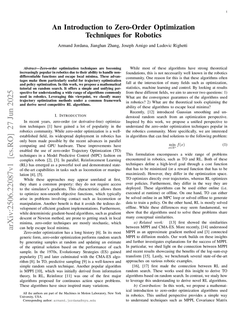 An Introduction to Zero-Order Optimization Techniques for Robotics