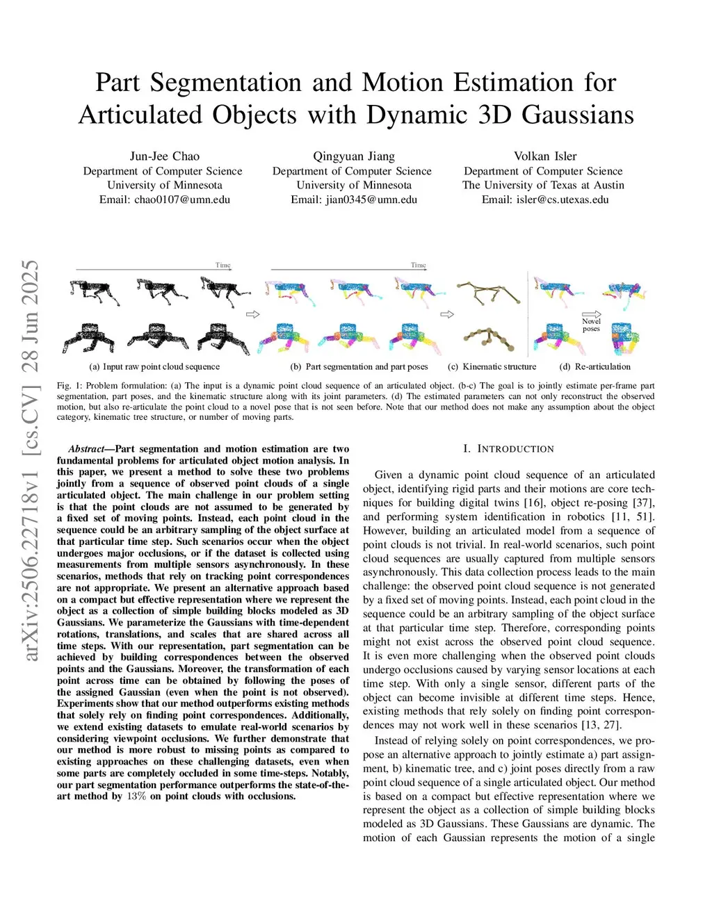 Part Segmentation and Motion Estimation for Articulated Objects with Dynamic 3D Gaussians