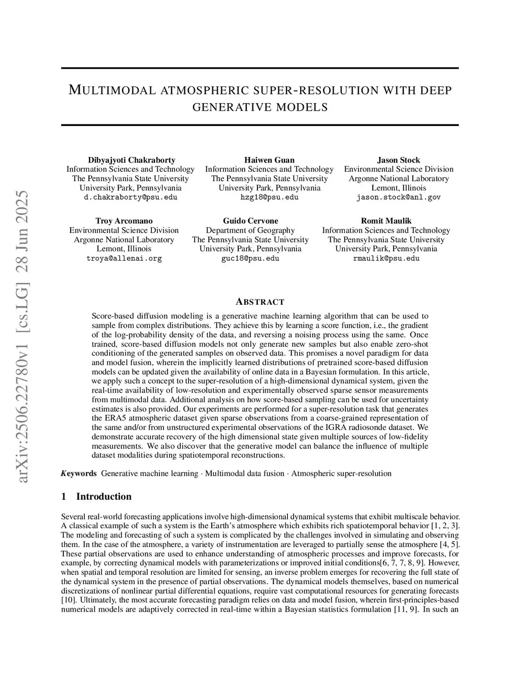 Multimodal Atmospheric Super-Resolution With Deep Generative Models