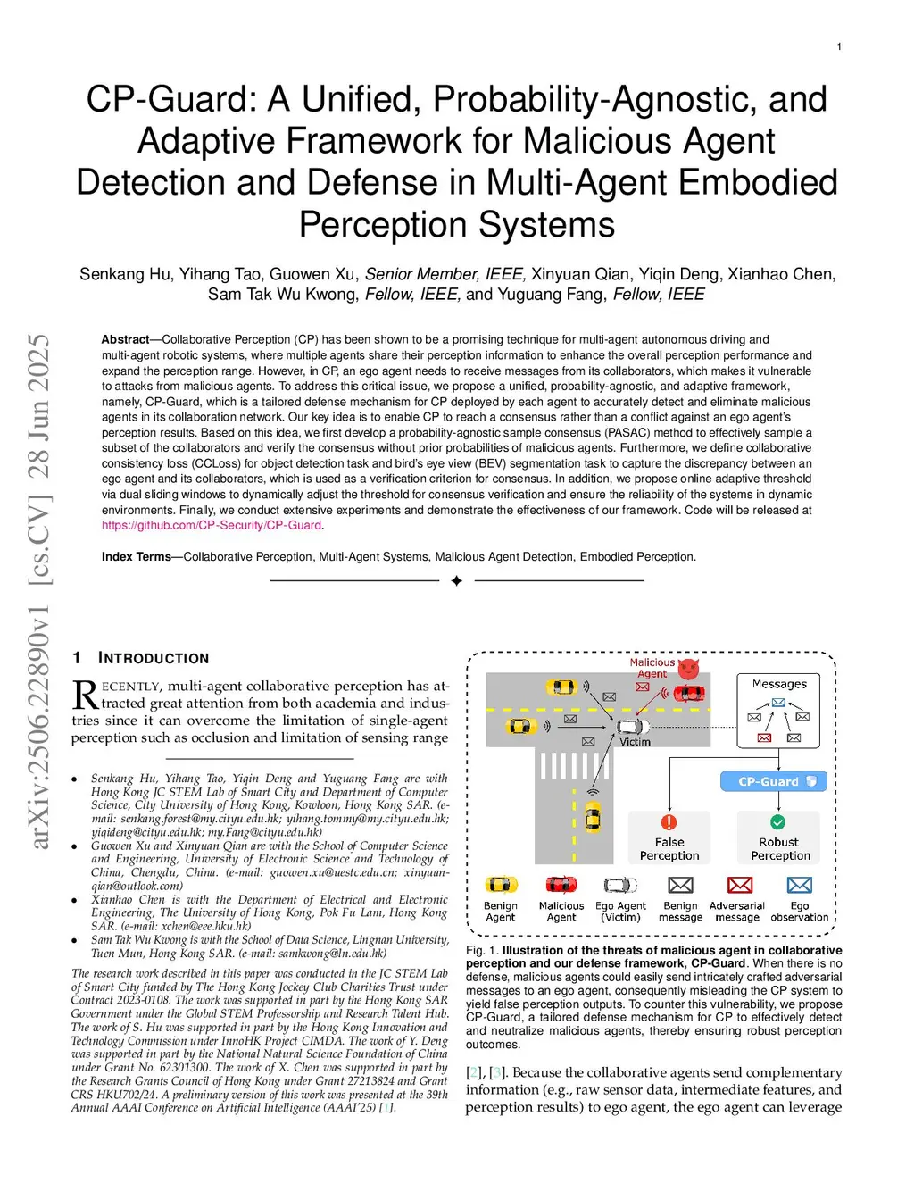 CP-uniGuard: A Unified, Probability-Agnostic, and Adaptive Framework for Malicious Agent Detection and Defense in Multi-Agent Embodied Perception Systems