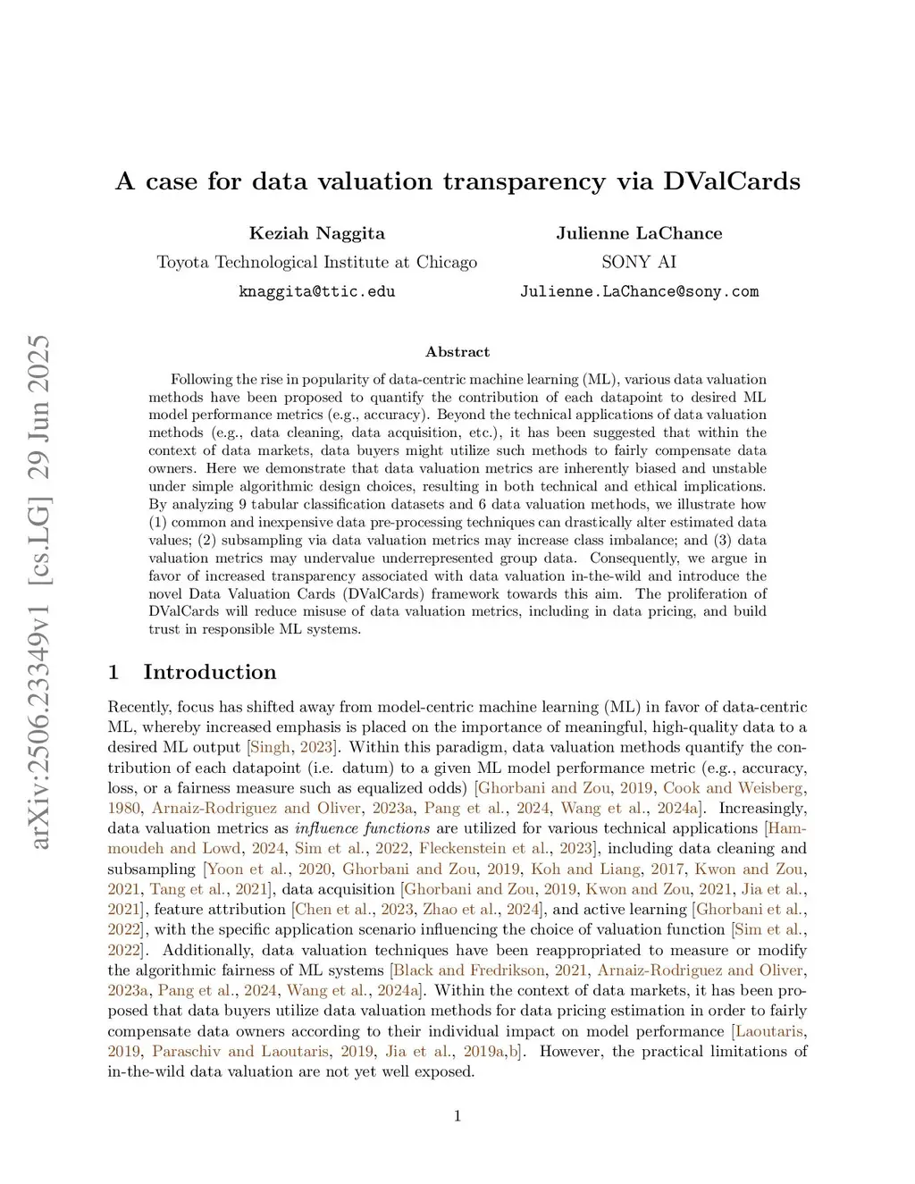 A case for data valuation transparency via DValCards