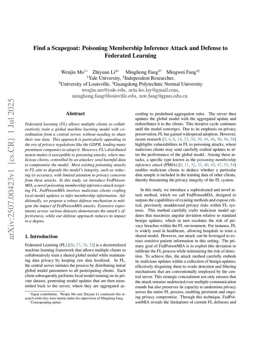 Find a Scapegoat: Poisoning Membership Inference Attack and Defense to Federated Learning