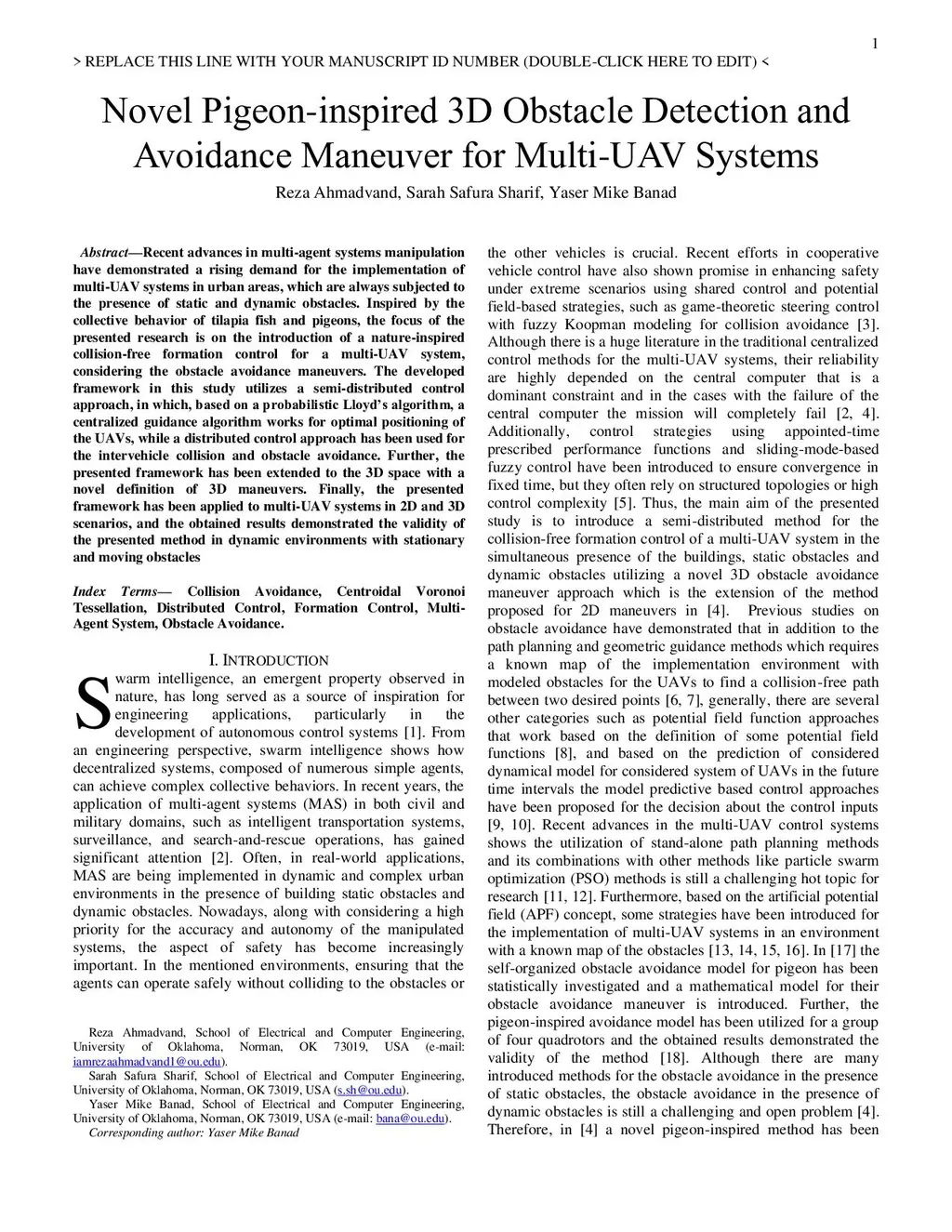 Novel Pigeon-inspired 3D Obstacle Detection and Avoidance Maneuver for Multi-UAV Systems