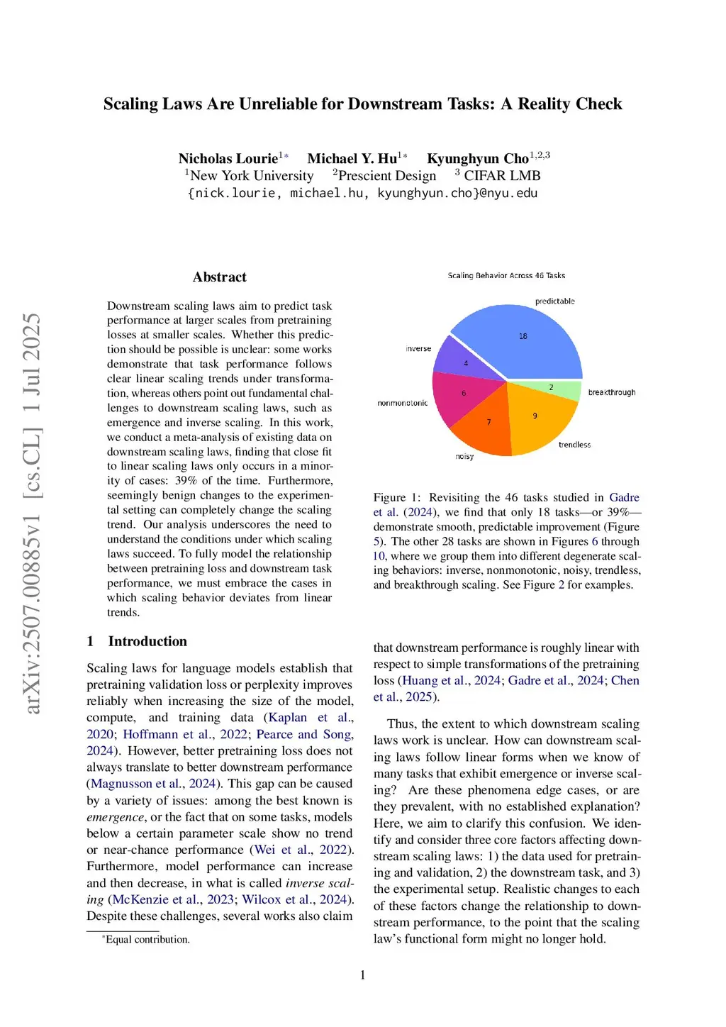 Downstream scaling laws aim to predict task performance at larger scales from the model's performance at smaller scales. Whether such prediction should be possible is unclear: some works discover clear linear scaling trends after simple transformations of the performance metric, whereas others point out fundamental challenges to downstream scaling laws, such as emergence and inverse scaling. In this work, we conduct a meta-analysis of existing data on downstream scaling laws, and we find that predictable scaling only occurs in a minority of cases: 39% of the time. Moreover, seemingly benign changes to the experimental setting can completely change the scaling behavior. Our analysis underscores the need to understand the conditions under which scaling laws succeed. To accurately model the relationship between pretraining loss and task performance, we must embrace the cases in which scaling behavior deviates from linear trends.
