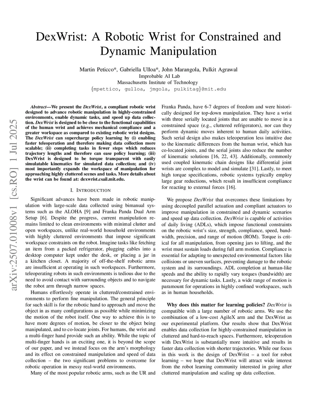 DexWrist: A Robotic Wrist for Constrained and Dynamic Manipulation
