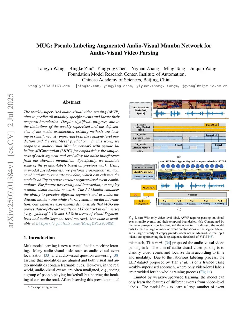 MUG: Pseudo Labeling Augmented Audio-Visual Mamba Network for Audio-Visual Video Parsing
