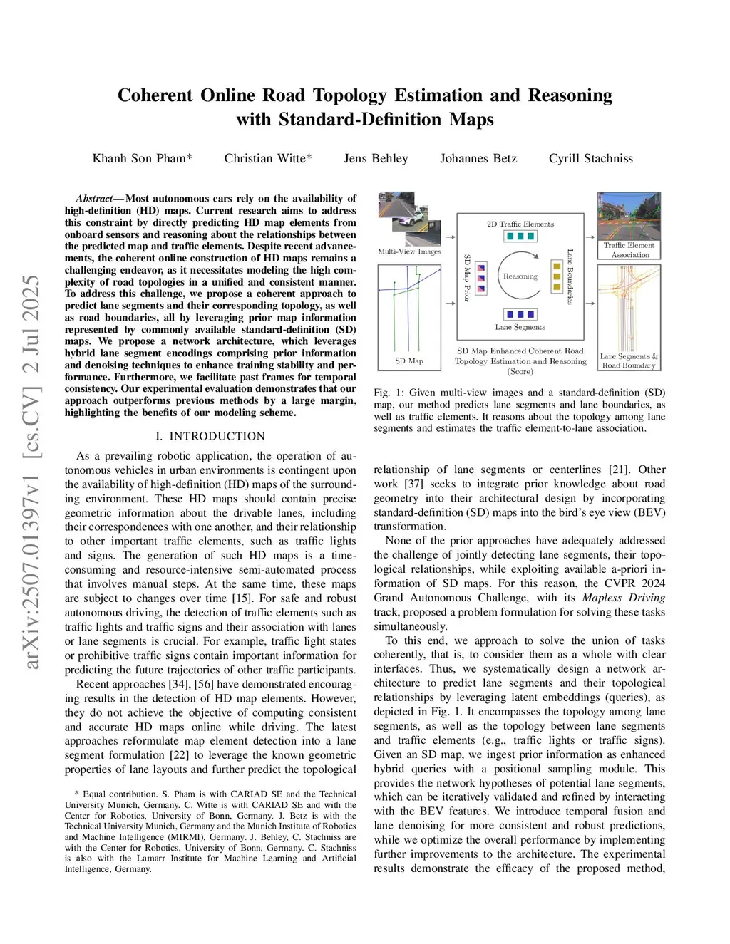 Most autonomous cars rely on the availability of high-definition (HD) maps. Current research aims to address this constraint by directly predicting HD map elements from onboard sensors and reasoning about the relationships between the predicted map and traffic elements. Despite recent advancements, the coherent online construction of HD maps remains a challenging endeavor, as it necessitates modeling the high complexity of road topologies in a unified and consistent manner. To address this challenge, we propose a coherent approach to predict lane segments and their corresponding topology, as well as road boundaries, all by leveraging prior map information represented by commonly available standard-definition (SD) maps. We propose a network architecture, which leverages hybrid lane segment encodings comprising prior information and denoising techniques to enhance training stability and performance. Furthermore, we facilitate past frames for temporal consistency. Our experimental evaluation demonstrates that our approach outperforms previous methods by a large margin, highlighting the benefits of our modeling scheme.