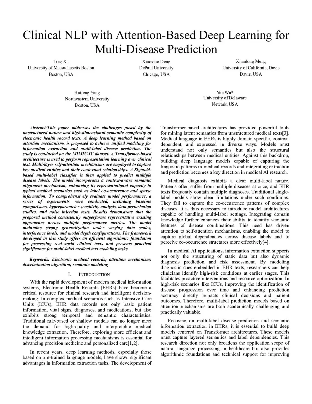 Clinical NLP with Attention-Based Deep Learning for Multi-Disease Prediction
