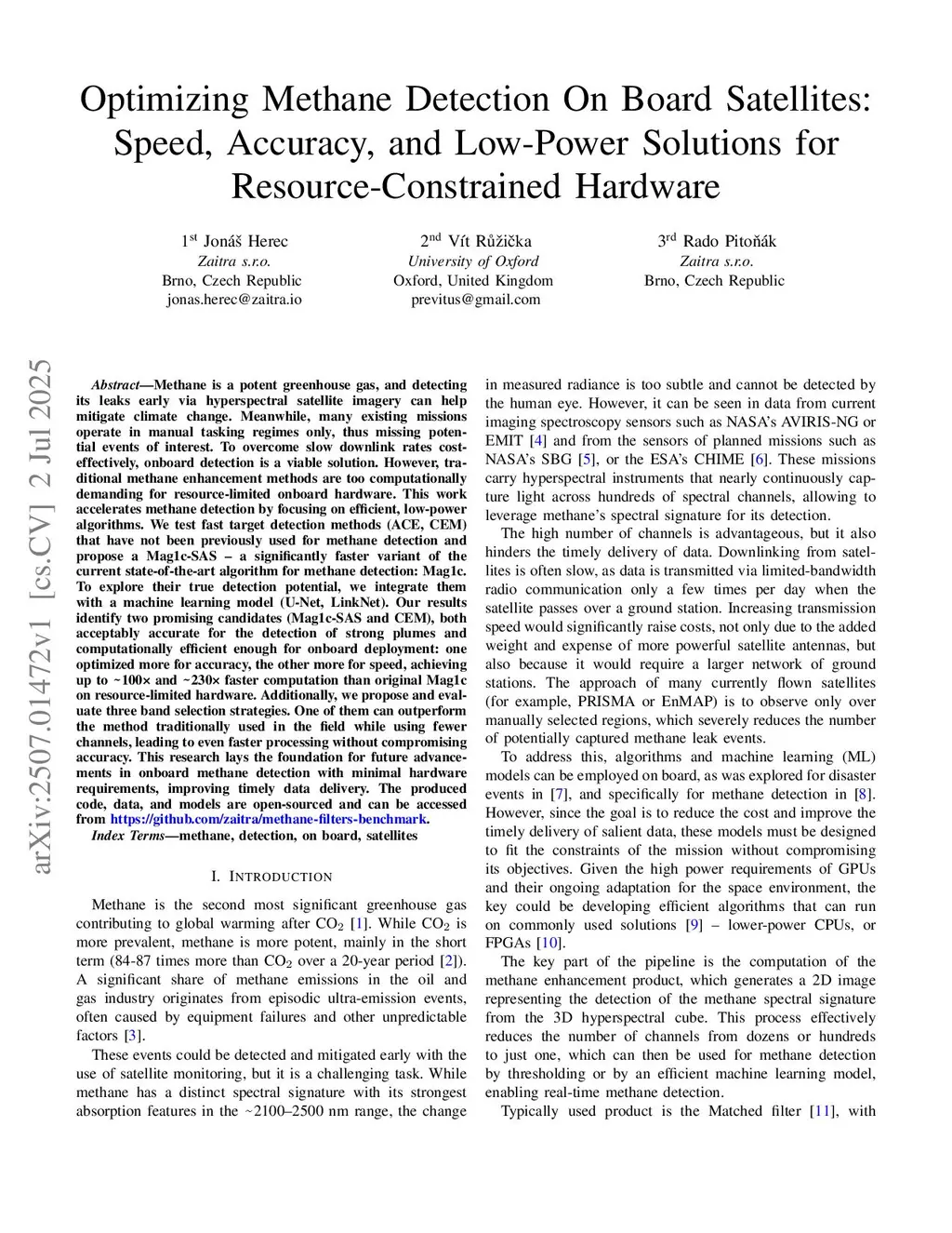 Optimizing Methane Detection On Board Satellites: Speed, Accuracy, and Low-Power Solutions for Resource-Constrained Hardware