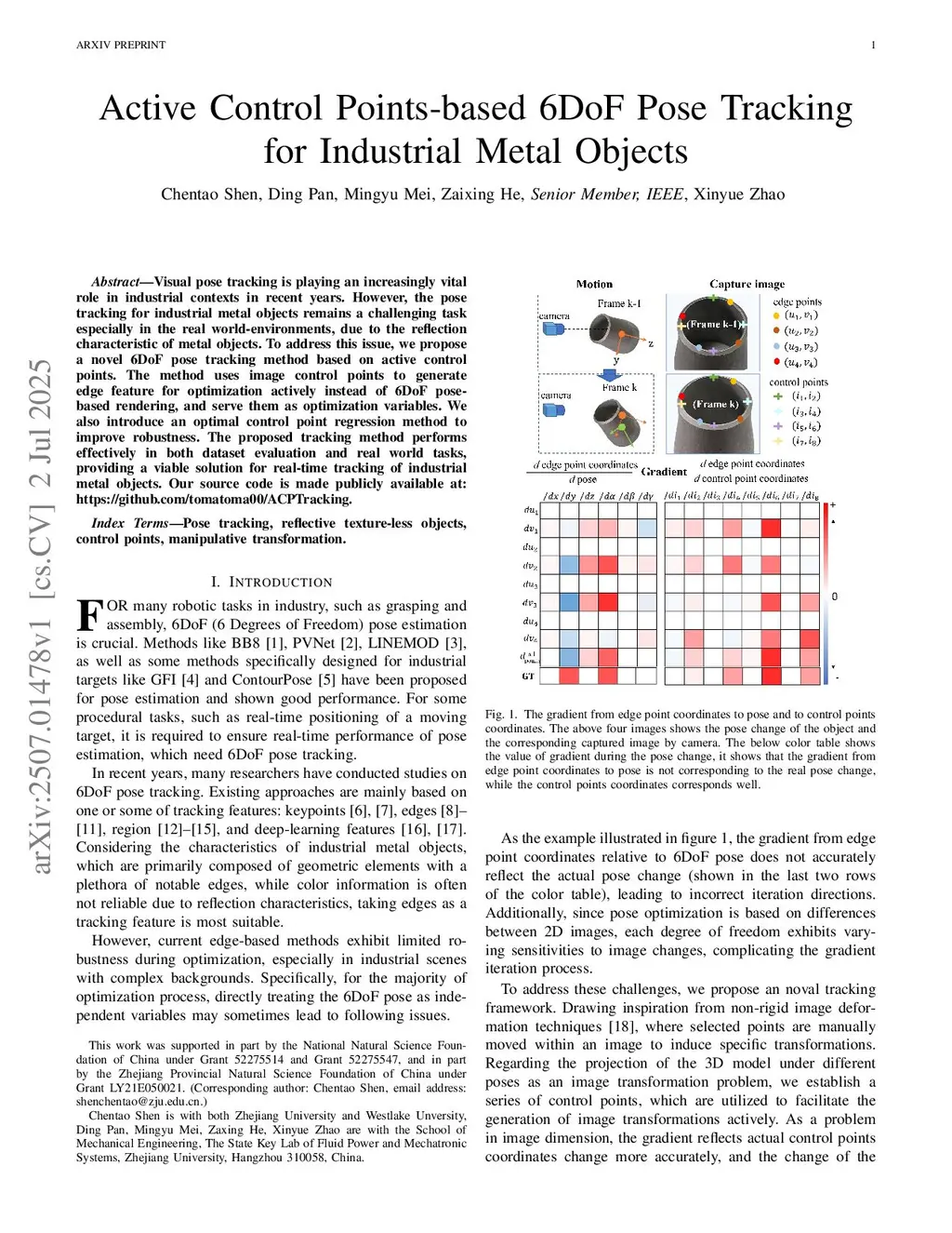 Active Control Points-based 6DoF Pose Tracking for Industrial Metal Objects