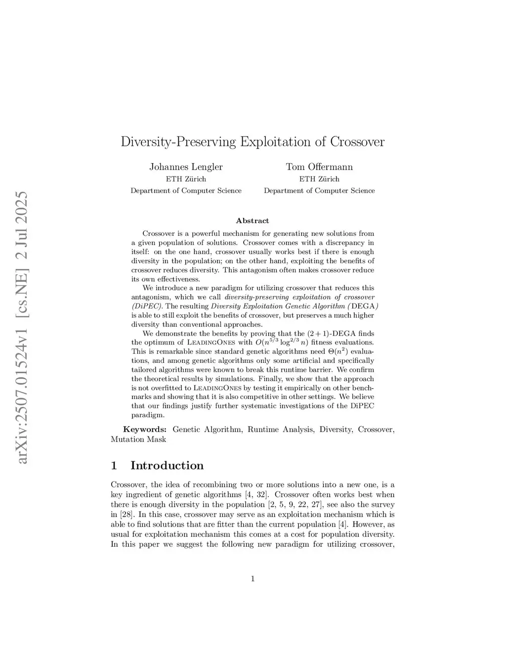 Diversity-Preserving Exploitation of Crossover