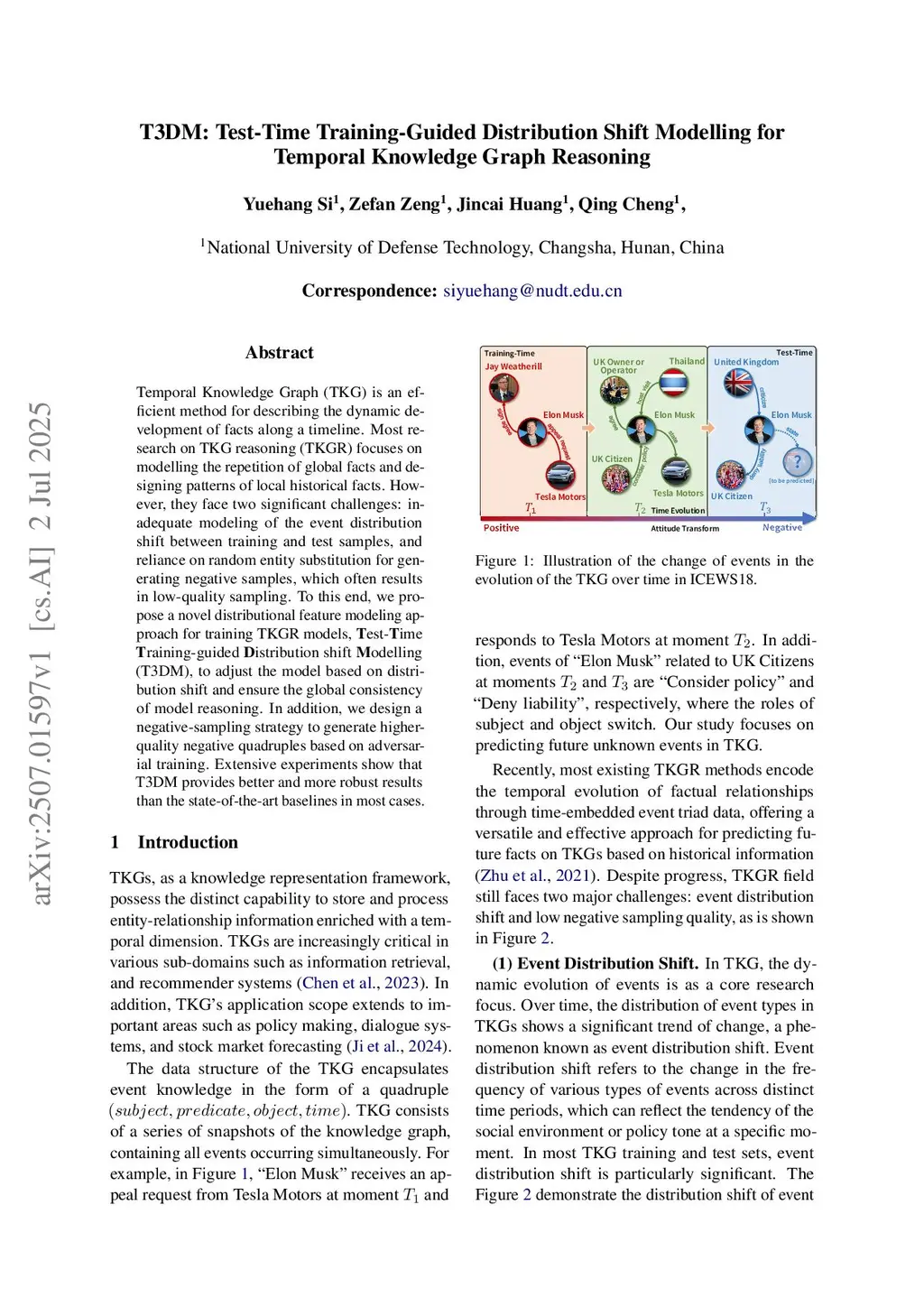 T3DM: Test-Time Training-Guided Distribution Shift Modelling for Temporal Knowledge Graph Reasoning