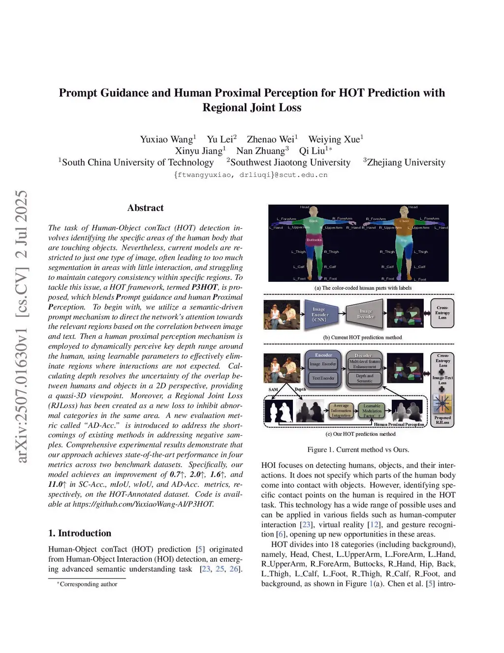 Prompt Guidance and Human Proximal Perception for HOT Prediction with Regional Joint Loss