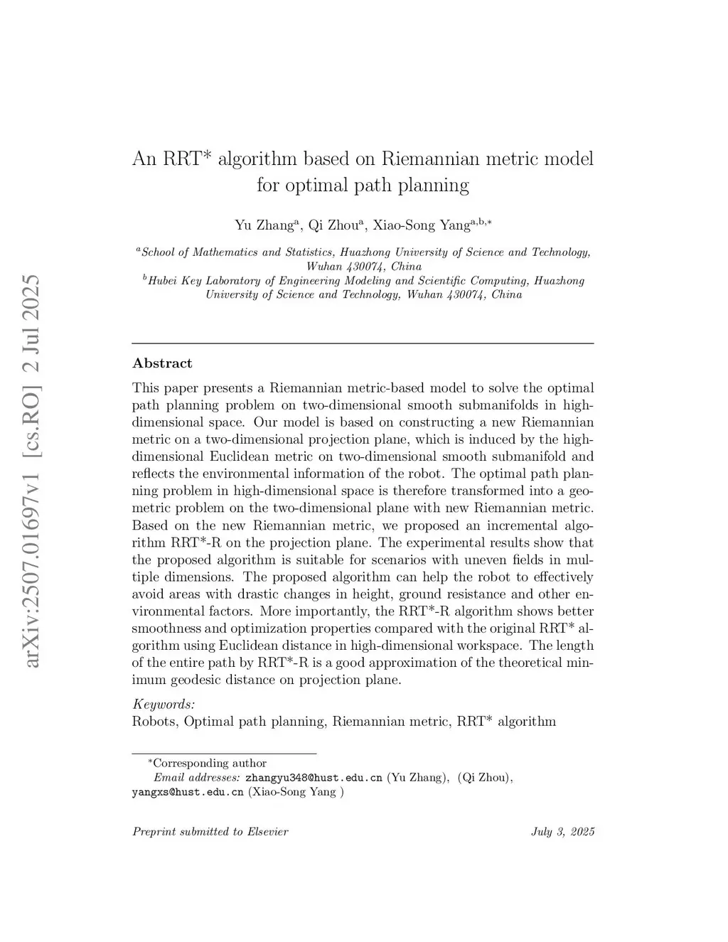An RRT* algorithm based on Riemannian metric model for optimal path planning