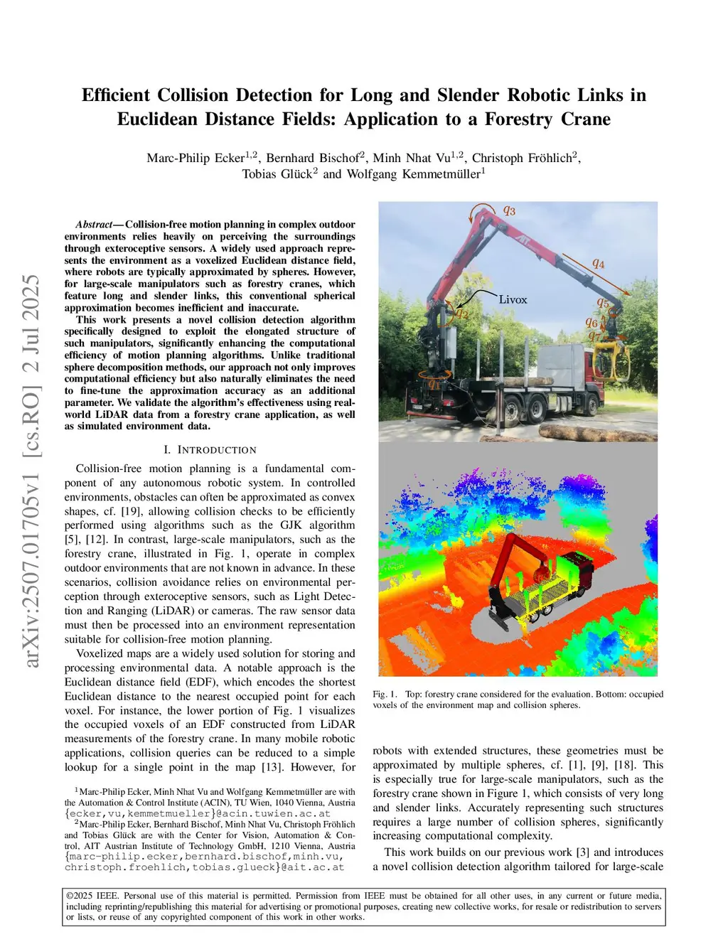 Efficient Collision Detection for Long and Slender Robotic Links in Euclidean Distance Fields: Application to a Forestry Crane