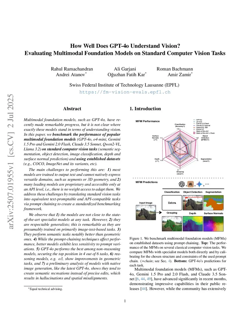Multimodal foundation models, such as GPT-4o, have recently made remarkable progress, but it is not clear where exactly these models stand in terms of understanding vision. In this paper, we benchmark the performance of popular multimodal foundation models (GPT-4o, o4-mini, Gemini 1.5 Pro and Gemini 2.0 Flash, Claude 3.5 Sonnet, Qwen2-VL, Llama 3.2) on standard computer vision tasks (semantic segmentation, object detection, image classification, depth and surface normal prediction) using established datasets (e.g., COCO, ImageNet and its variants, etc).The main challenges to performing this are: 1) most models are trained to output text and cannot natively express versatile domains, such as segments or 3D geometry, and 2) many leading models are proprietary and accessible only at an API level, i.e., there is no weight access to adapt them. We address these challenges by translating standard vision tasks into equivalent text-promptable and API-compatible tasks via prompt chaining to create a standardized benchmarking framework.We observe that 1) the models are not close to the state-of-the-art specialist models at any task. However, 2) they are respectable generalists; this is remarkable as they are presumably trained on primarily image-text-based tasks. 3) They perform semantic tasks notably better than geometric ones. 4) While the prompt-chaining techniques affect performance, better models exhibit less sensitivity to prompt variations. 5) GPT-4o performs the best among non-reasoning models, securing the top position in 4 out of 6 tasks, 6) reasoning models, e.g. o3, show improvements in geometric tasks, and 7) a preliminary analysis of models with native image generation, like the latest GPT-4o, shows they exhibit quirks like hallucinations and spatial misalignments.