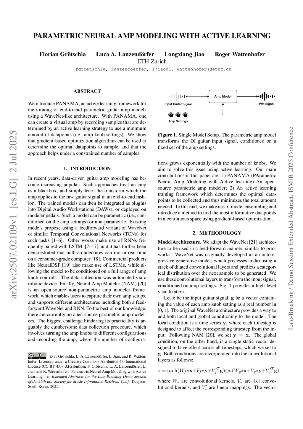 We introduce PANAMA, an active learning framework for the training of end-to-end parametric guitar amp models using a WaveNet-like architecture. With \model, one can create a virtual amp by recording samples that are determined by an active learning strategy to use a minimum amount of datapoints (i.e., amp knob settings). We show that gradient-based optimization algorithms can be used to determine the optimal datapoints to sample, and that the approach helps under a constrained number of samples.