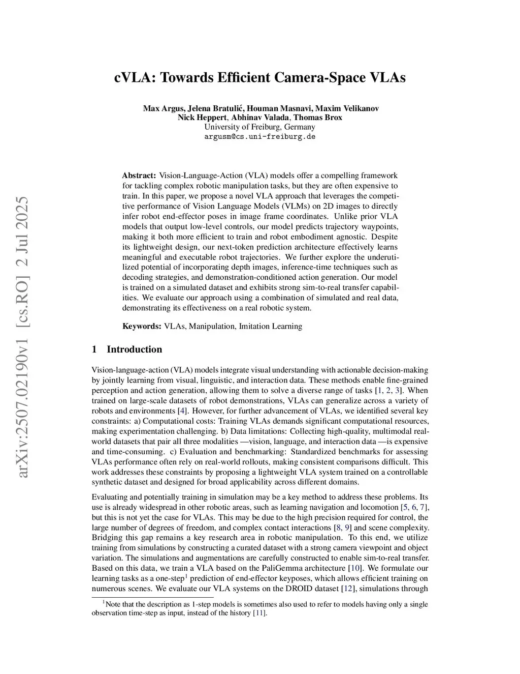 cVLA: Towards Efficient Camera-Space VLAs