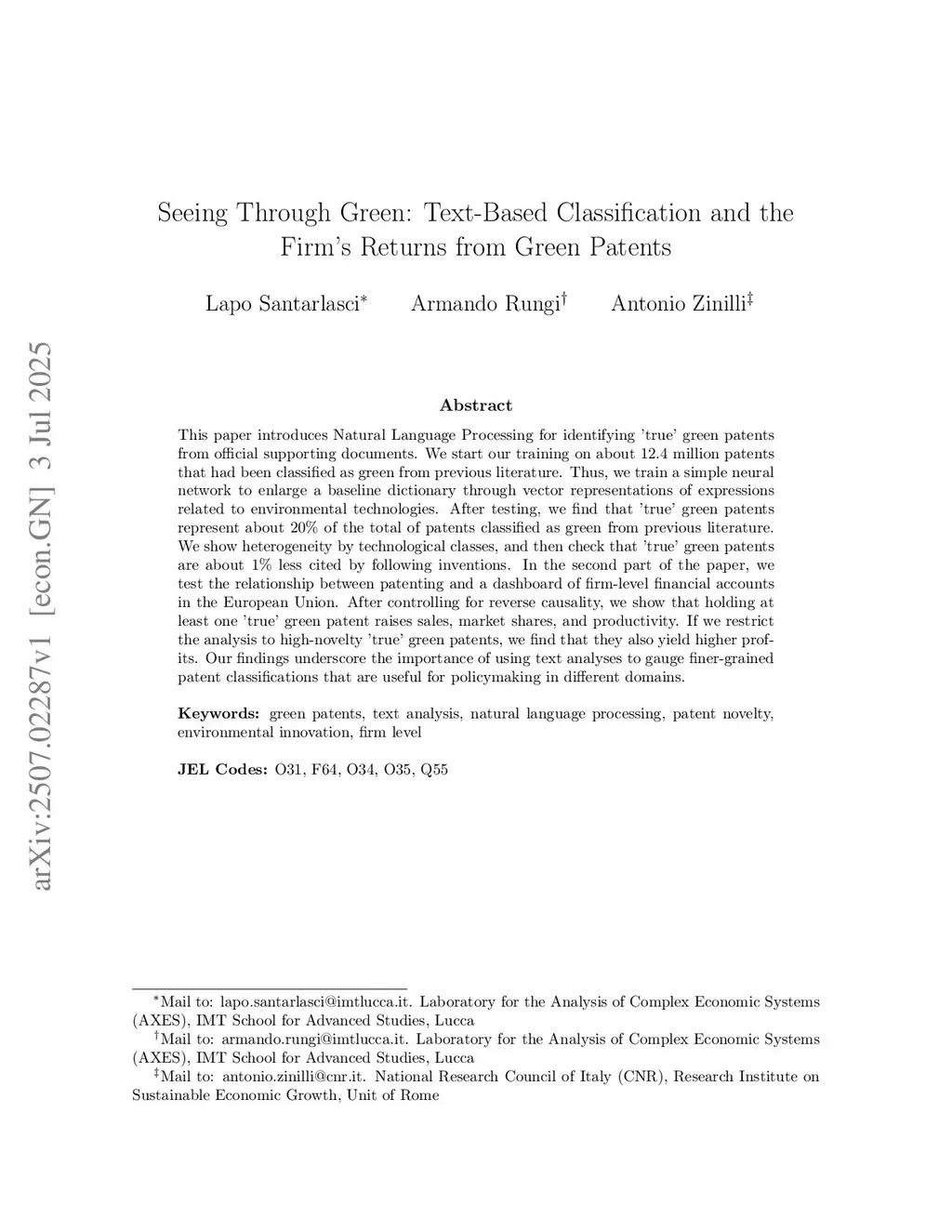 Seeing Through Green: Text-Based Classification and the Firm's Returns from Green Patents