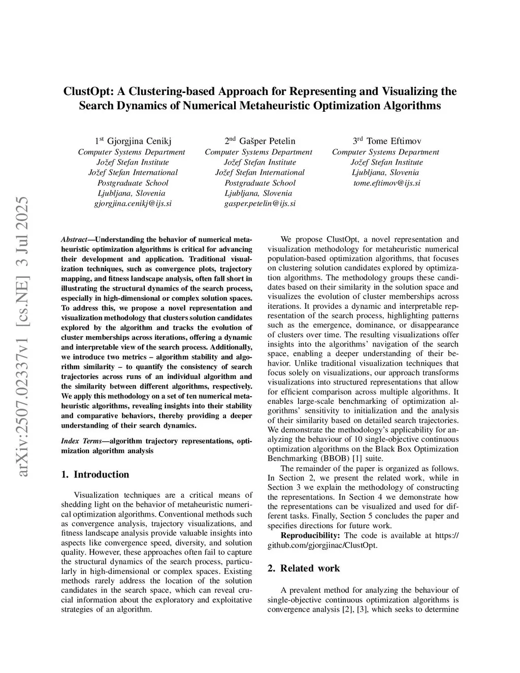 ClustOpt: A Clustering-based Approach for Representing and Visualizing the Search Dynamics of Numerical Metaheuristic Optimization Algorithms