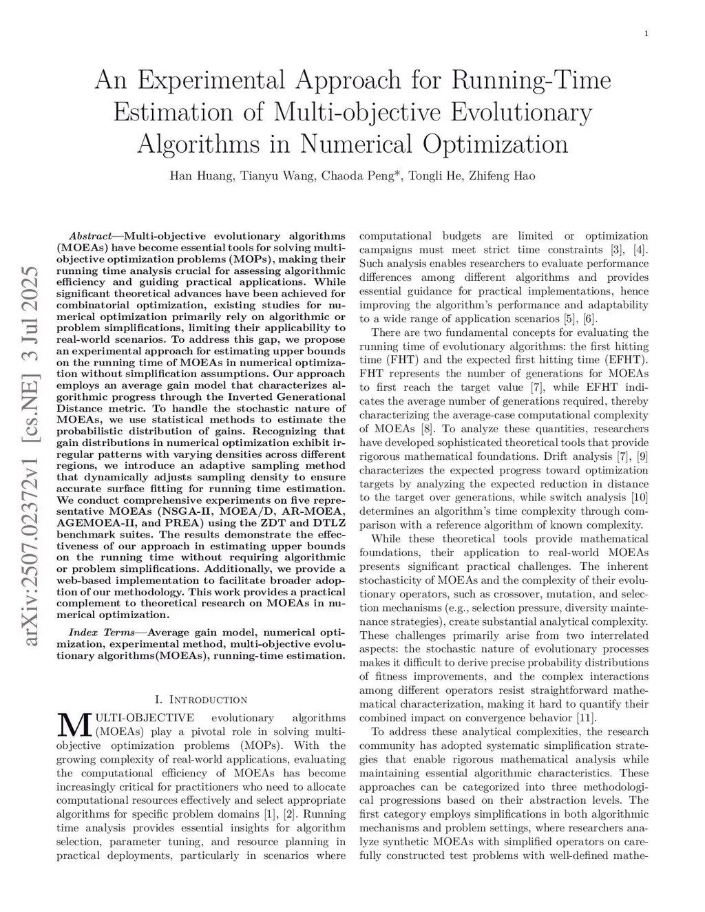 An Experimental Approach for Running-Time Estimation of Multi-objective Evolutionary Algorithms in Numerical Optimization
