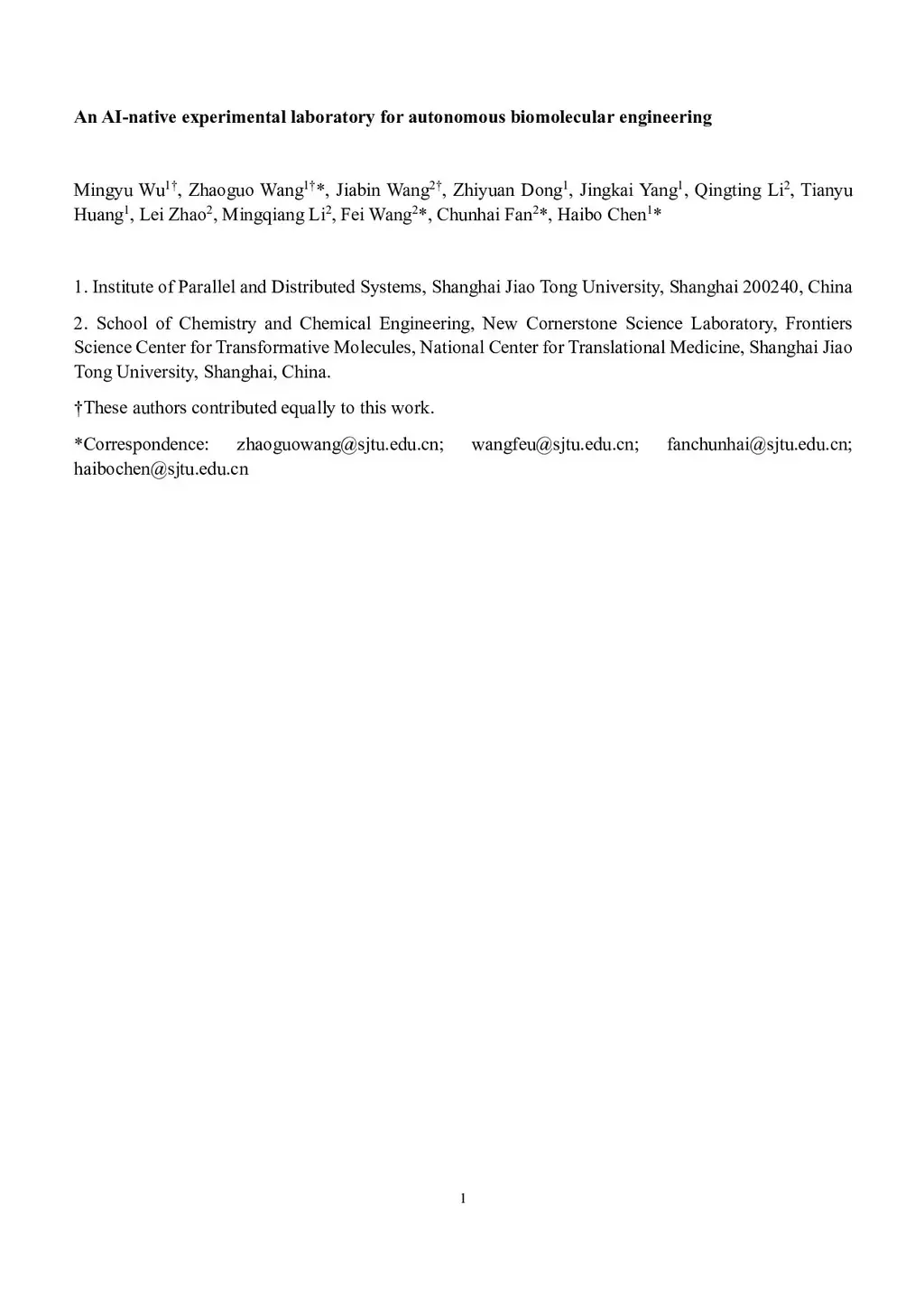 An AI-native experimental laboratory for autonomous biomolecular engineering